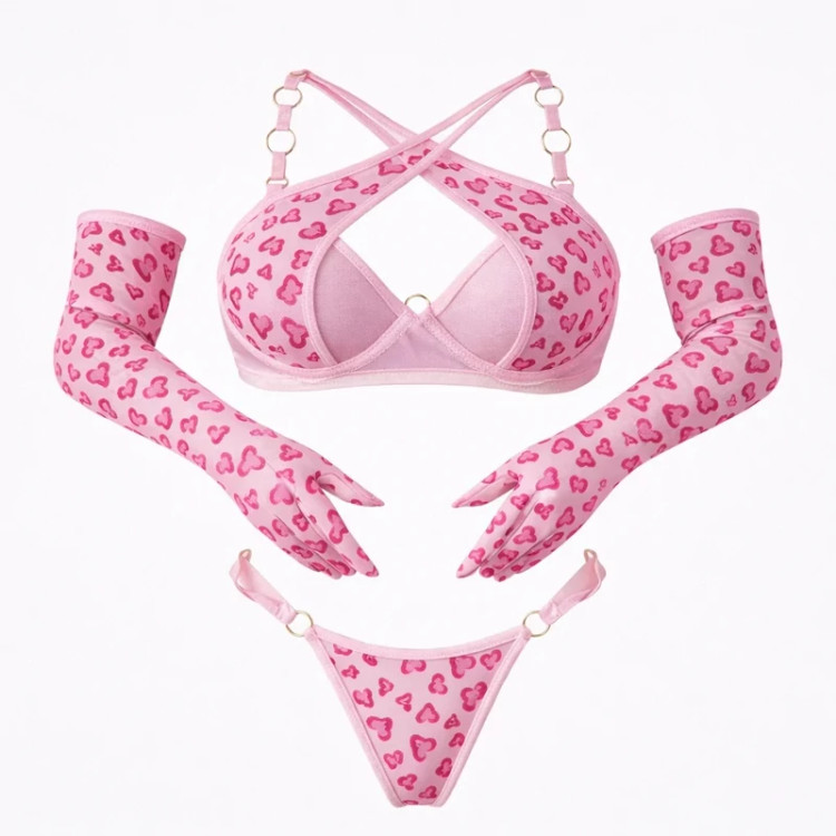 این کاستوم فانتزی با تم صورتی و طرح قلب، ترکیبی از طراحی جسورانه و فرمدهی دقیق است. سوتین فنردار با برشهای ضربدری و حلقه فلزی مرکزی، جلوهای خاص به قسمت بالاتنه میدهد و دستکشهای بلند همرنگ، استایل را کامل و یکدست میکنند. حضور جزئیات فلزی ظریف و بندهای قابل تنظیم، ظاهر محصول را حرفهای و چشمگیر کرده است.