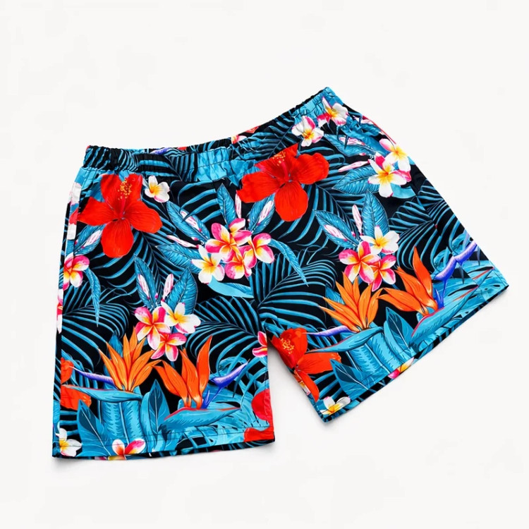 شورتک ساحلی زنانه بیگ سایز با طراحی استوایی و گلهای درشت رنگی، انتخابی جذاب برای استایل تابستانی و سفرهای ساحلی است. زمینه تیره با ترکیب برگهای آبی و گلهای قرمز، نارنجی و سفید، جلوهای خاص و چشمنواز ایجاد کرده که کاملاً حس و حال تابستانی دارد.